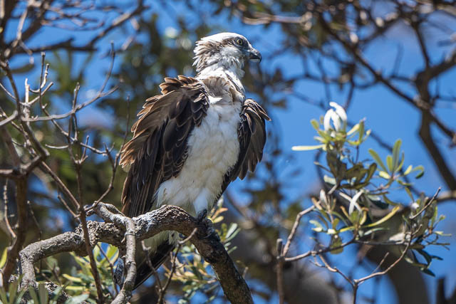 The Osprey didn’t stay around for long. I climbed up to the top again to photograph a hunting Nankeen Kestrel.