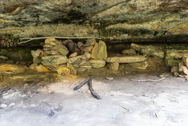 It was quite easy to scramble down to the creek. Walking short way downstream, not that far down, we checked out a cave on the western side. There was an old fireplace and some relics.
