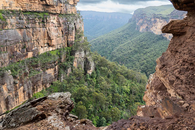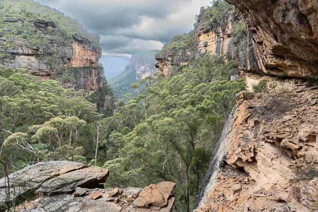 We then traversed on the other die of the creek – the western side on a large ledge to a lookout overlooking the junction. Here, there was a large cairn.