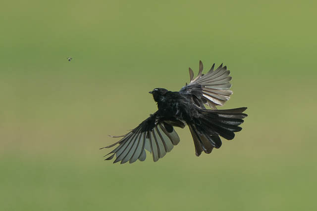 I stayed to watch the Kite, waiting to see if it would take-off. Luckily I could wait in the shade of a large bush. But I was distracted by a Willie Wagtail hunting for an insect –