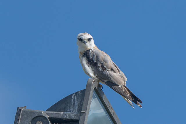 The hinterland was fair quiet, so I went up to the top area. I spotted a juvenile Black-shouldered Kite perched on a lamp.
