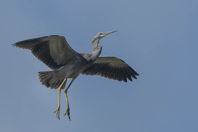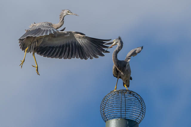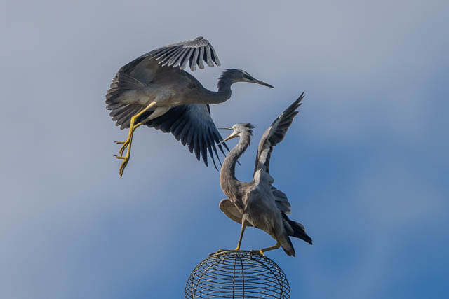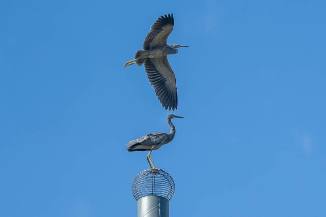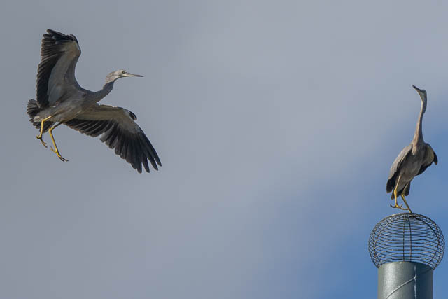 When I arrived, things at Landing Lights Wetland seemed fairly quiet. There were the usual Teals and Stilts. Then a White-faced Heron flew in –
