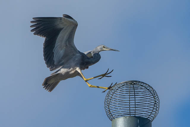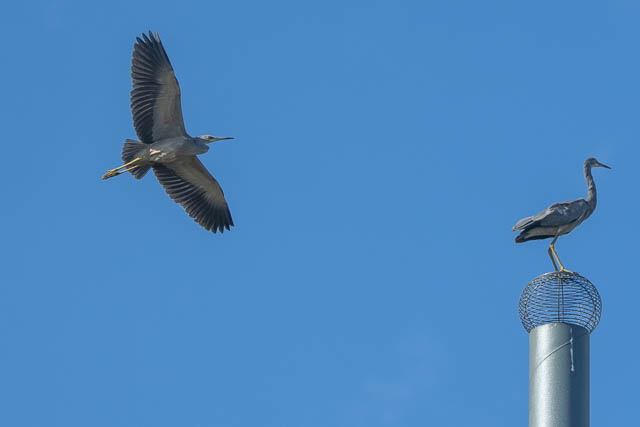 I then walked out to the Cooks River and scanned the banks near the airport for the Osprey. No sign of it, so I headed back to the wetlands. I saw a White-faced Heron fly in and land on the sewer vent.