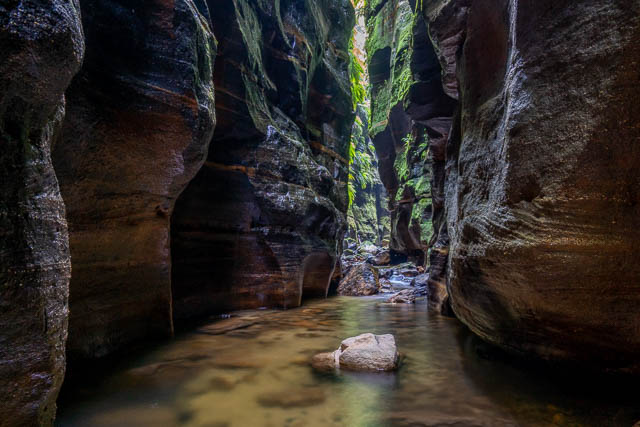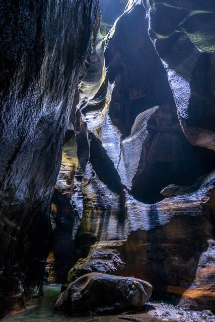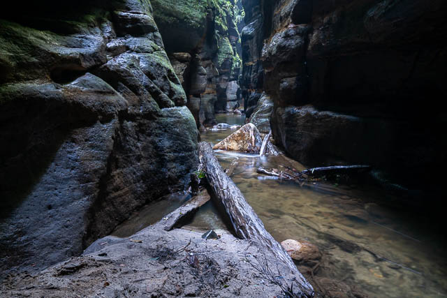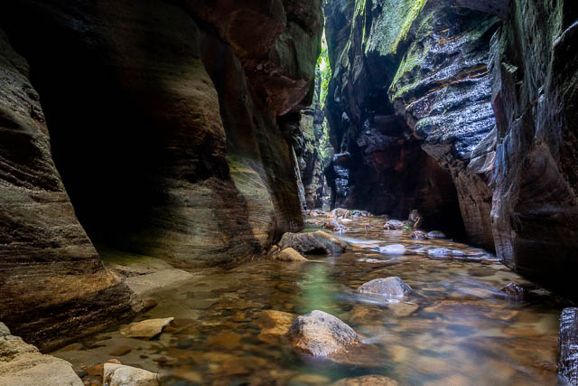 One problem I had on this trip was falling droplets. There was a lot of water falling all along the canyon due to the recent rain and I had to be careful none landed on the camera lens front element. I did sipe the lens down with a cloth a few times.