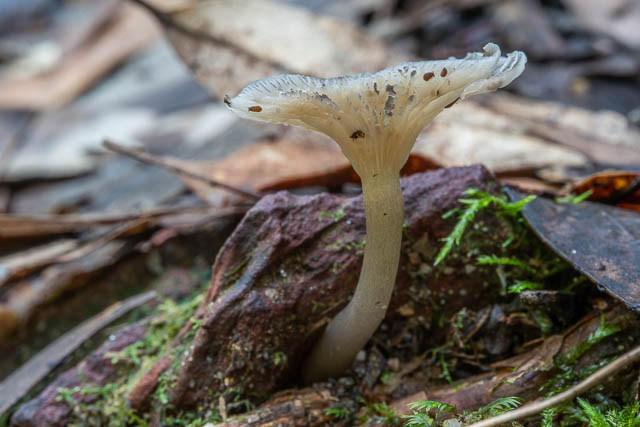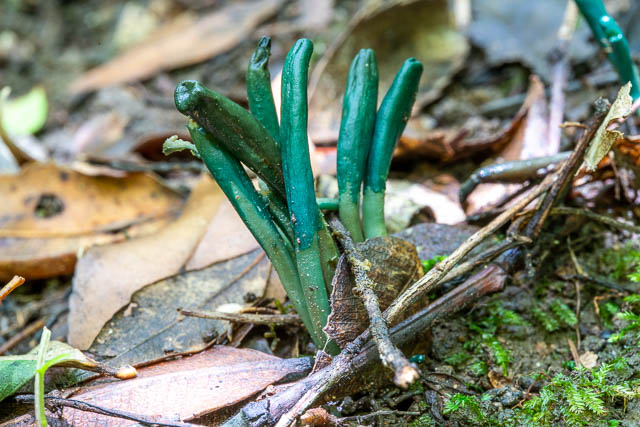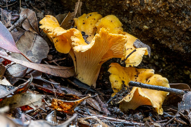 I saw two of these Gomphus growing on a dirt bank where I usually see it each season. When small, it seems to exude blue droplets and bruises blue. I have only observed it in two locations – here in Sassafras Gully and at one spot in Birdwood Gully. I had recently observed it coming up at the Birdwood Gully location.