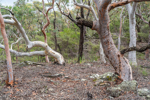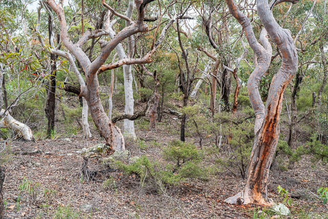 Back at Bob’s car, parked at the start of the Turpentine Track, we then explored an old and closed off fire road nearby. It climbed to a small hill nearby. On top were some nice trees.
