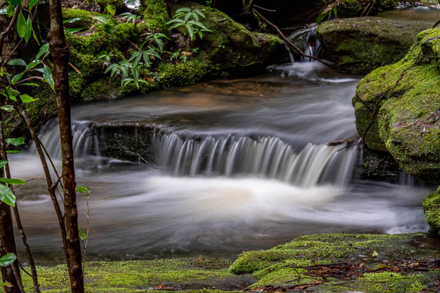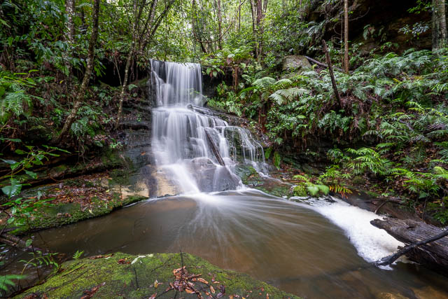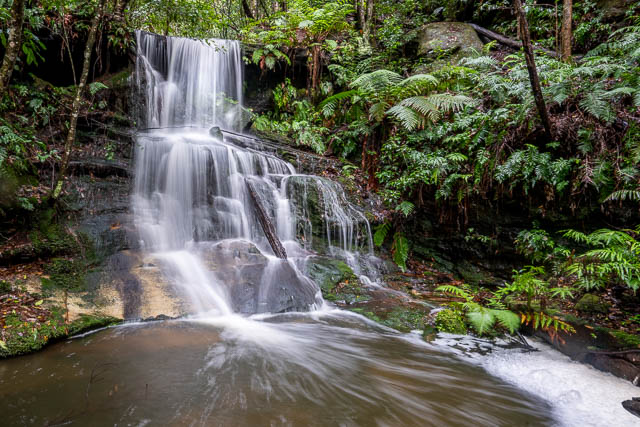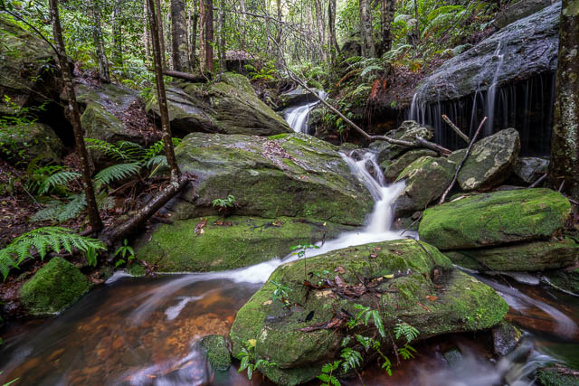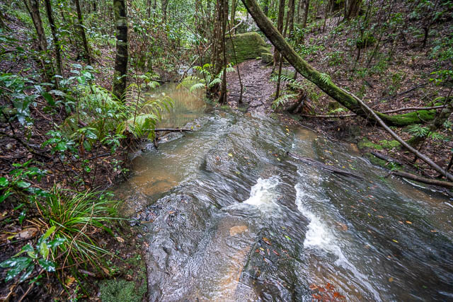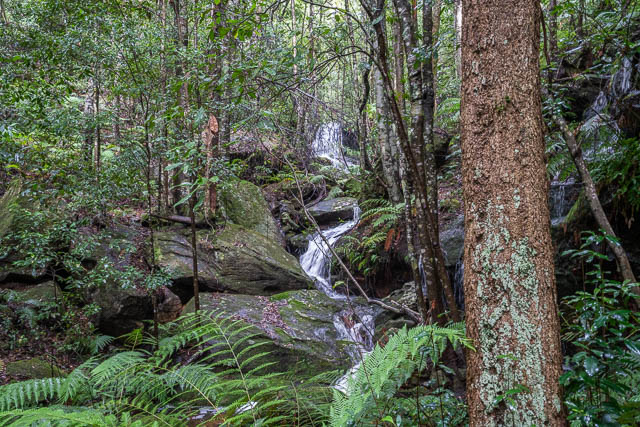 Wet weather was forecast , but not as wet as the previous few days, so I caught an early train to Faulconbridge, and was soon walking down the Victory Track. The water in the creek was nice and high – which would help me get a few photos of waterfalls.