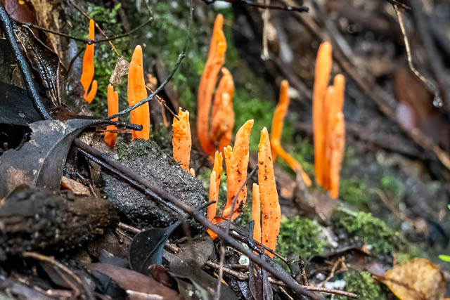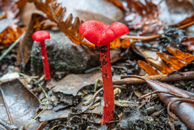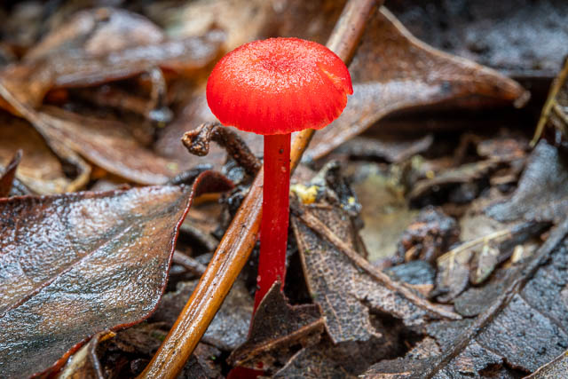 After returning to the track, I continued downstream, Along the way I found some red waxcaps. These where at the junction with Numantia Creek.
