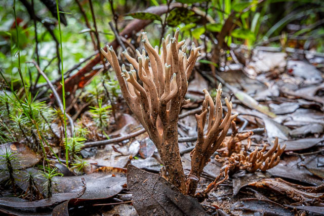 On the way back, I bumped into Jenna, another fungi photographer. She had found some nice blue tipped Ramaria sp.