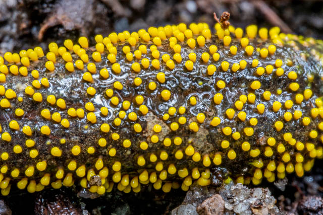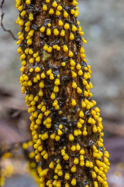 I found this nice Slime Mould ( Physarale sp.) spread over sticks and leaves in two spots about a metre apart –