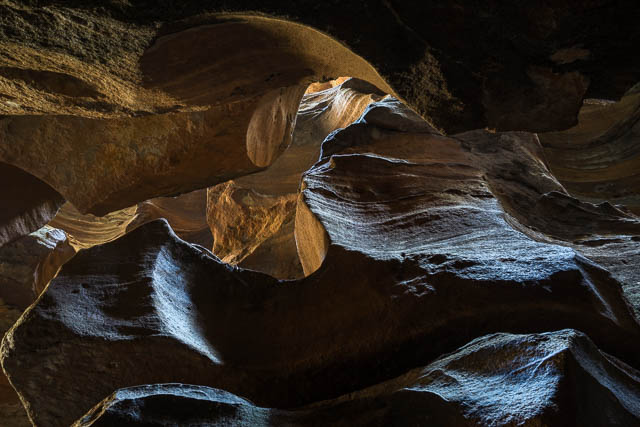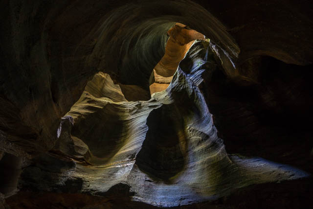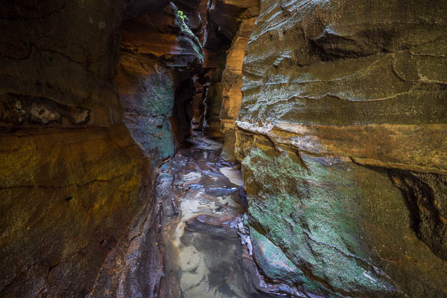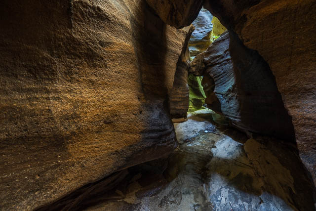 We soon arrived at the canyon. Sunday was a very sunny day – no clouds this time until late afternoon. So we would have to rely on reflected light for our photography. This is where Hole in the Wall Canyon his good. In fact it is interesting to see the rich colours in the canyon that can be picked up with a camera on a tripod with a long exposure. To the eye much of the canyon just looks dark. This is especially so in the Upper Constriction.