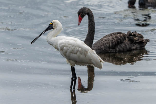 A Royal Spoonbill and a Black Swan –