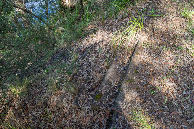On the same flat was a boat dock, used for boat construction. Greg pointe out some steel rails that once would have been used on the dock, now used to strengthen the sea wall.