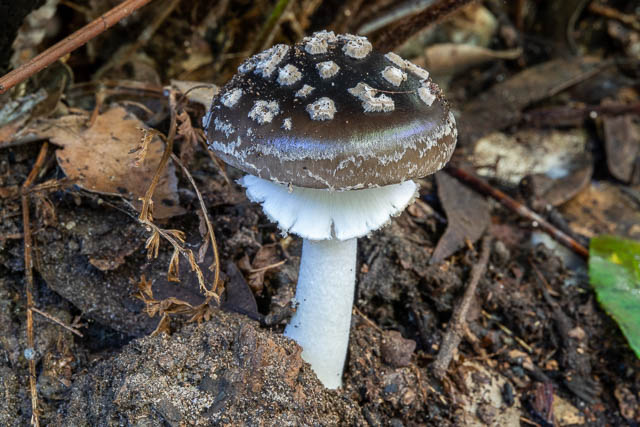 At the bottom of the first descent, near the creek, I found this nice fungus. Amanita sp.