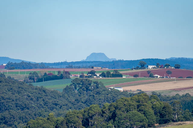 We drove via Braddons Lookout, a place where I had often observed raptors on previous visits to this part of Tasmania. This time there were none, but we still had a fine view. Here we are looking at a distant Cradle Mountain.