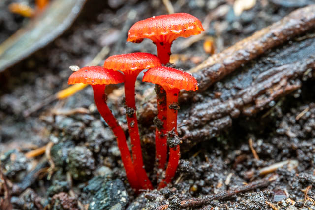 Waxcap fruiting bodies mostly appear later in the fungal season in Great Sydney, when the weather is cooler. May to August is best if there is good rainfall. Good conditions for waxcaps also seem to be good conditions for colourful coral fungi as well.