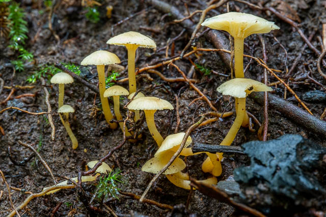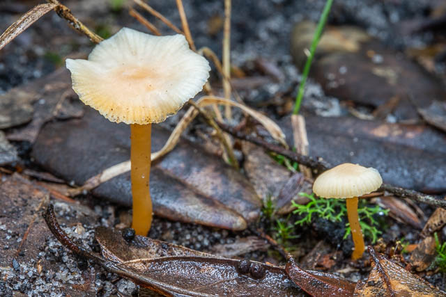 In the photos above, you can see small waxcap at the back left. It looks like Hygrocybe pseudograminicolor.