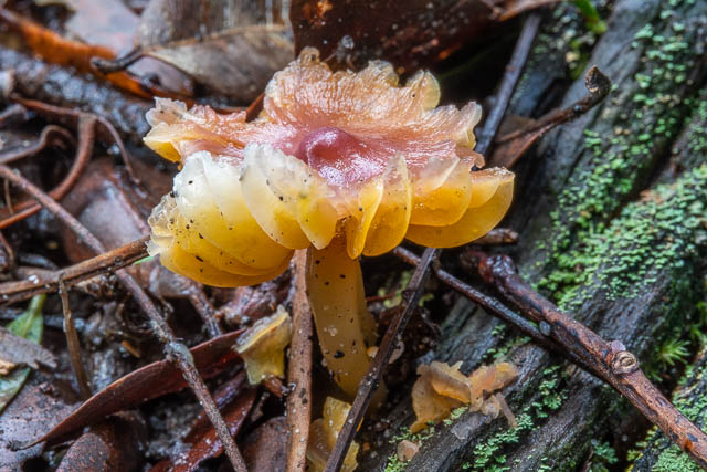 Looking for fungi in these rainforest gullies is a bit like a treasure hunt. You never know what you will find. This trip I considered myself very lucky. Conditions were very good and I was in the right place with time to find a fair amount of what was available. It also probably helps to know the area pretty well – and the right places to look. Most of this fungi was a bit away from the track.