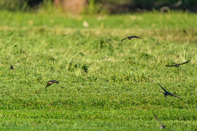 Part of the Golf Course was being mowed. This attracted a large number of Welcome Swallows –