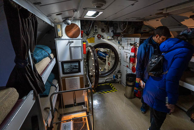 You enter the boat via a forward hatch which takes you down to the six torpedo tubes.