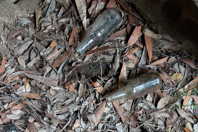 In another cave, and it was in quite an obscure location, well away from tracks and requiring scrambling to reach, I found an overhang that had a number of old glass bottles.