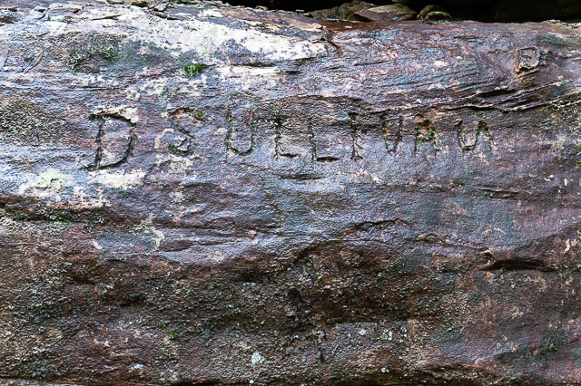 Close to the main track we spotted some old chiselled graffiti. This one is “D Sullivan” –