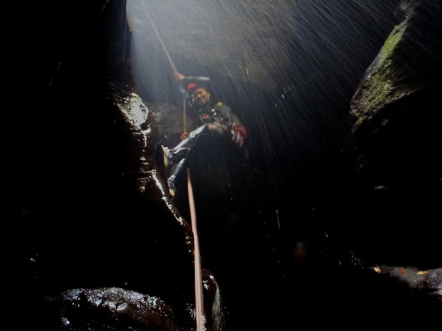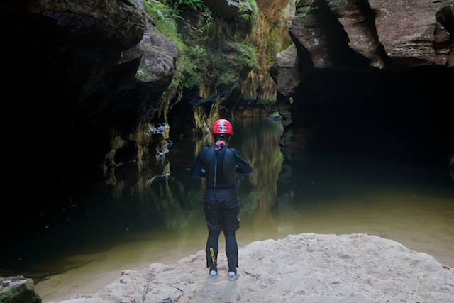 Whungee Wheengee Canyon is a tributary of Wollangambe Canyon. As canyons go its not too bad at all. It is reasonably long and has many deep dark sections. It is also quite a sporting canyon – with lots of swims, numerous tricky down climbs, and a couple of abseils thrown in.