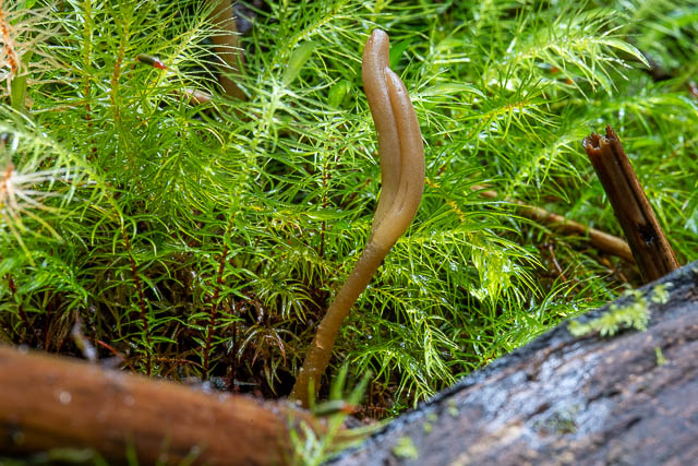 This interesting club was spotted by Sarah, and was growing on a moss covered log. I had originally thought it was Thuemenidium berteroi, but this new designation is now used. I have seen it growing in Tasmania twice – in rainforest at Castra Falls and at Lake St Clair. More information can be found here.