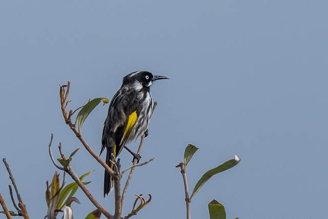 I did a few short walks towards magic Point and out to Boora Point, but often encountered rain – so retreated back to my overhang. On one trip, I did see this New Holland Honeyeater grab an insect in flight.