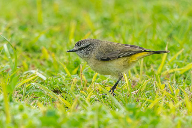 In the old sporting fields, where I headed to sit out some rain, I saw a number of Yellow-rumped Thornbills feeding in the wet grass.