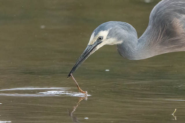 At the south end of the Waterbird Refuge, I watched this White-faced Heron hunting in the shallow water.