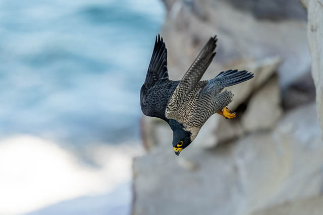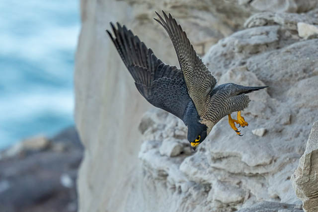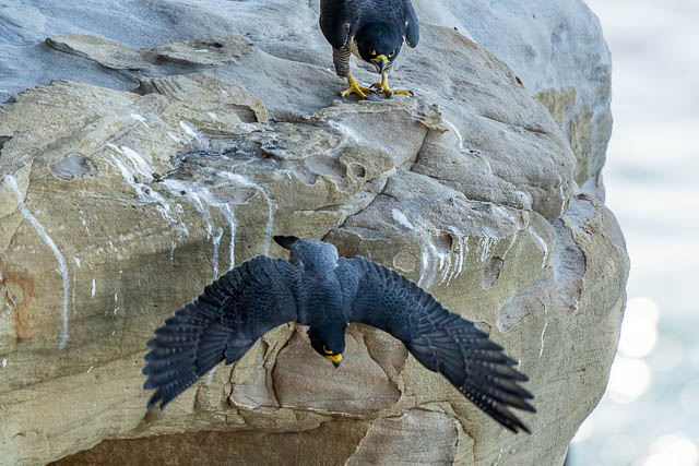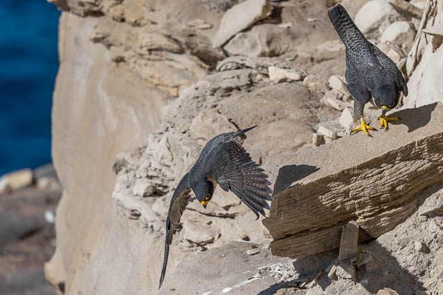 The male flew off and perched further along the cliffs.