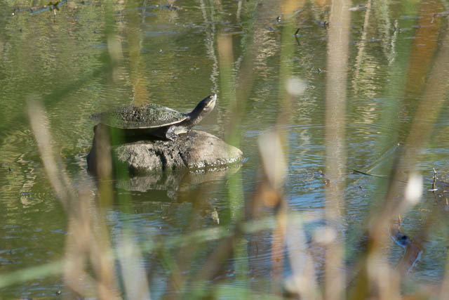 I was pleasantly surprised to see a turtle sitting on a rock in the lower pond.