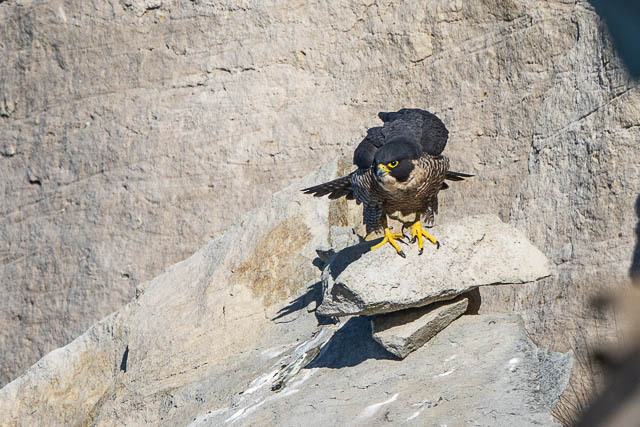 As soon as we arrived at the Peregrine Falcon nesting area, we saw the male perched high on the cliffs.