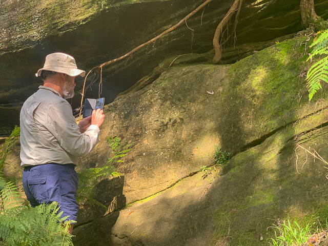We then checked out a second area – looking for a habitation cave used by a hermit or homeless person early in the 20th century. We checked out a lot of ledges but did not have any luck finding caves suitable for a person to reside in.