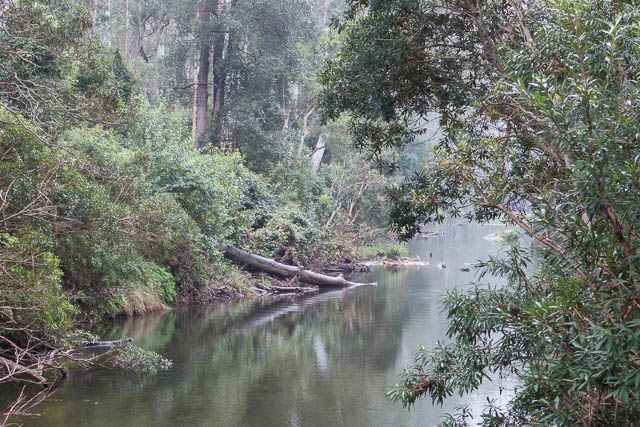 At the bottom of Walfords Gully, there were some large open flats. Many Blue Gums were growing. A nice place that would have been an excellent campsite. We kept on our way. At Rocky Points Ravine (the creek that flows through Mt Hay Canyon) we stopped for lunch. We drank water from the side creeks rather than the main river, to avoid pollution.