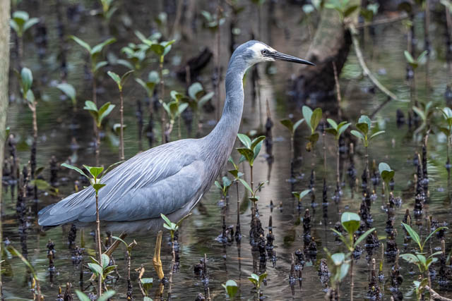 On the way I saw this White-faced Heron hunting in the mangroves –