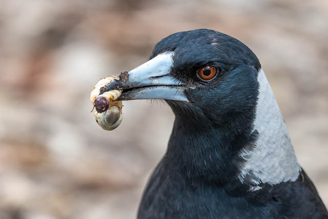 Magpie with grub –