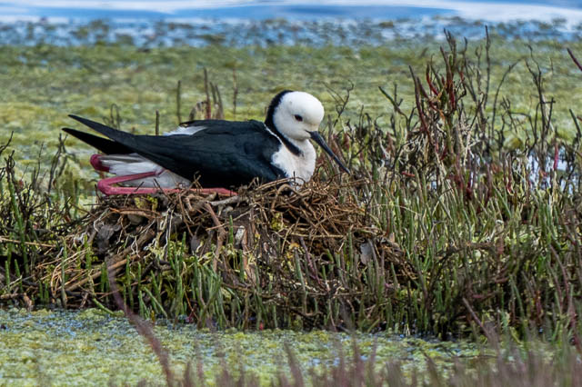 Back at the hide, another Pied Stilt on a nest –