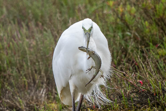 Near the smaller ponds, a Great Egret had just grabbed a skink.