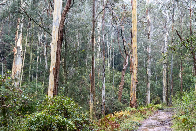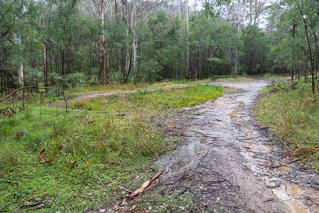 On the way up, we stopped in a nearby overhang to have lunch out of the rain. Past the cave was short cut track that we used to cut off a bend in the fire road.