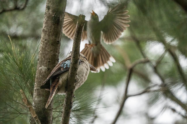In Waterworth Park, I saw some Noisy Miners harassing a Laughing Kookaburra.