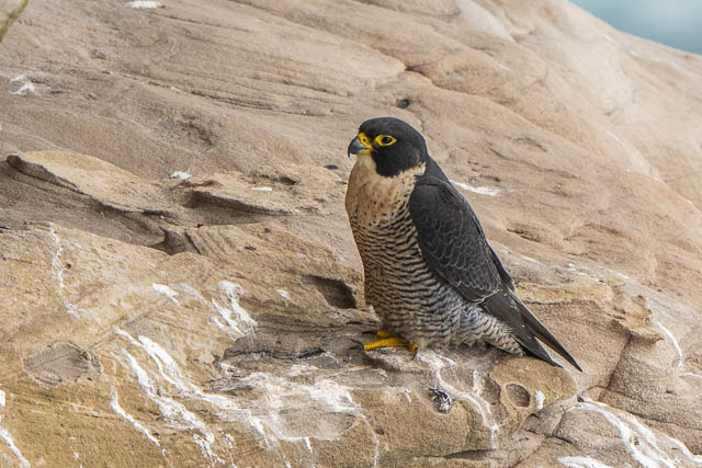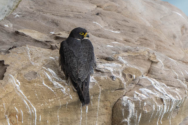 When we arrived at the Peregrine Falcon nesting area, another photographer was there – Biggles. And one Peregrine Falcon, the female, was on a ledge.