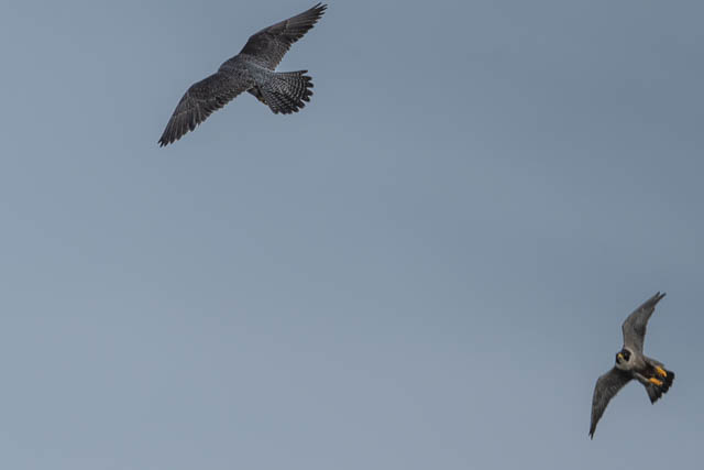 Back at the nesting area, we saw the female and male Peregrine Falcons interacting.