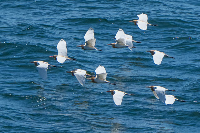 This was unusual – a flock of Cattle Egrets flew past – and they were a fair way out in the sea.
