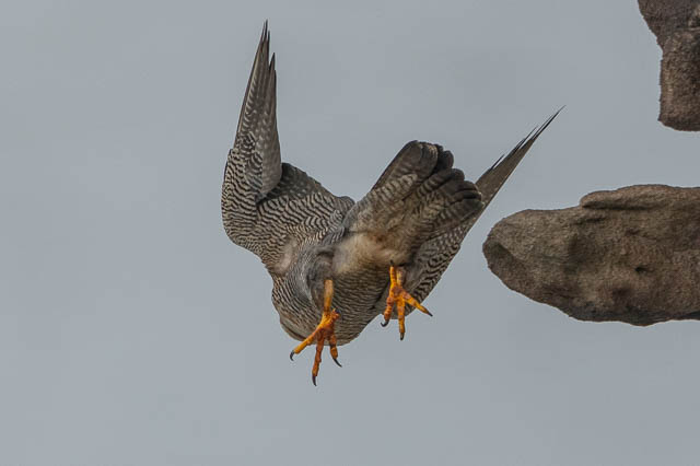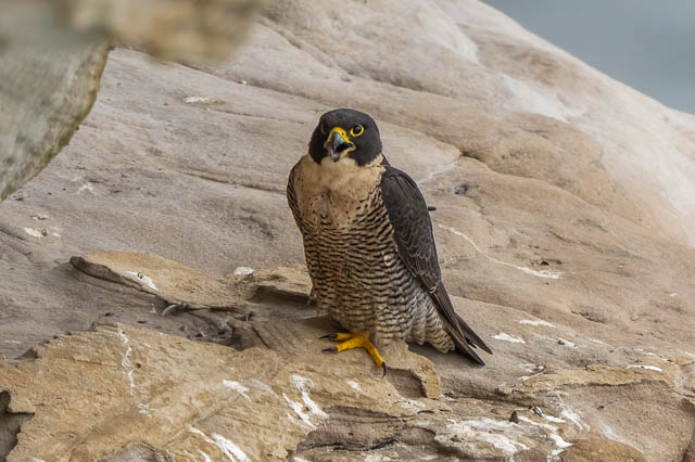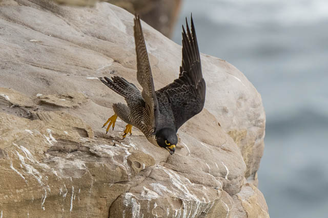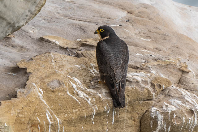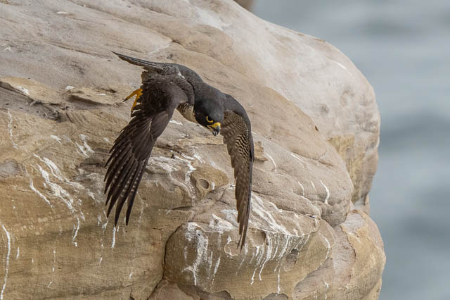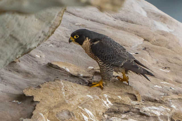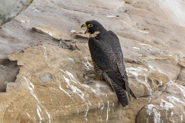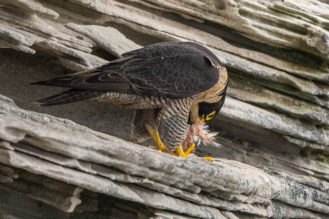 A little later she flew down the cliffs a short distance and landed on another ledge. We went closer to investigate. She was eating.