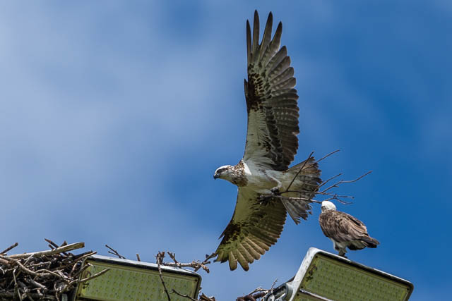 And it grabbed another stick for the nest. Ospreys seem to be constantly adding sticks to their nests.