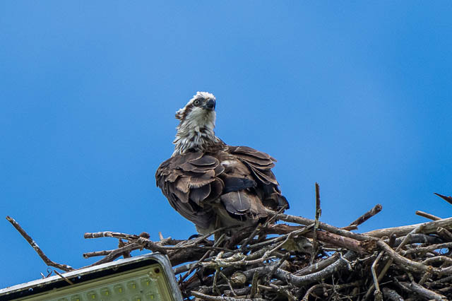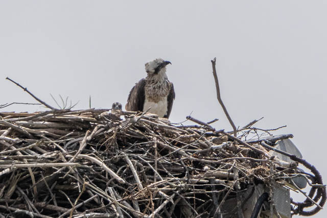 The first site I went to, Rat Park, has a large Osprey nest, high on a light. I have visited this nest many times over the past few years and this is the first time I have seen evidence of chicks.