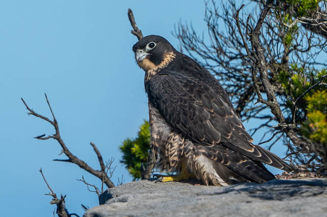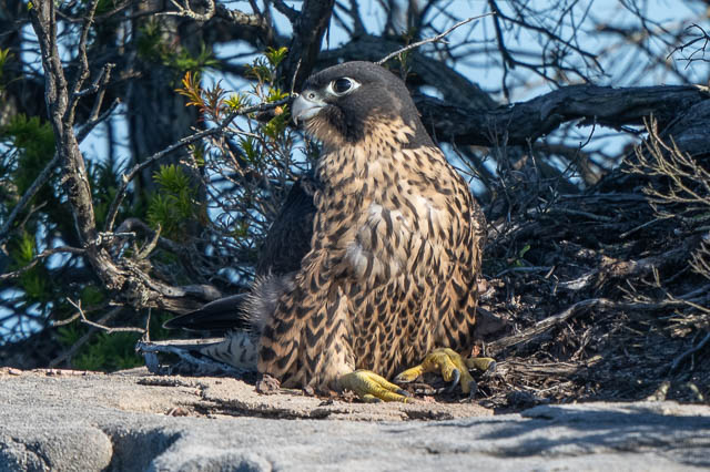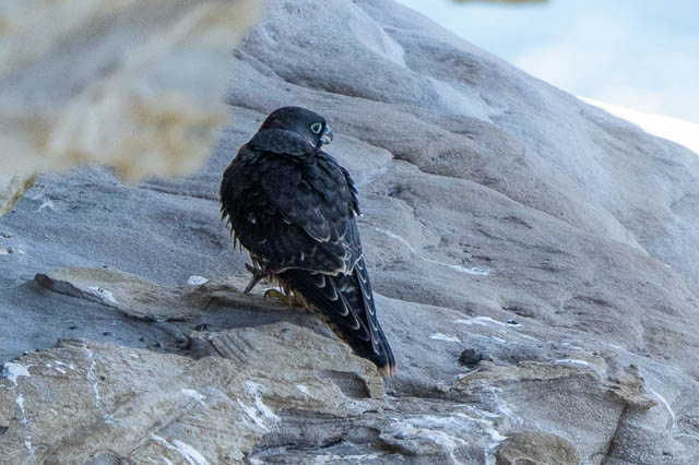 Juts before 5pm, as we were getting ready to leave, we spotted both the juveniles perched high on the cliffs. A parent was on a lower ledge nearby.