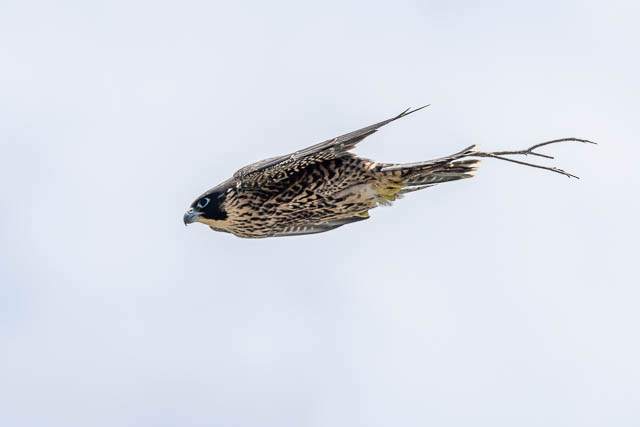 This juvenile is flying past with a stick. This seems to be something the juveniles do. Perhaps part of their learning.